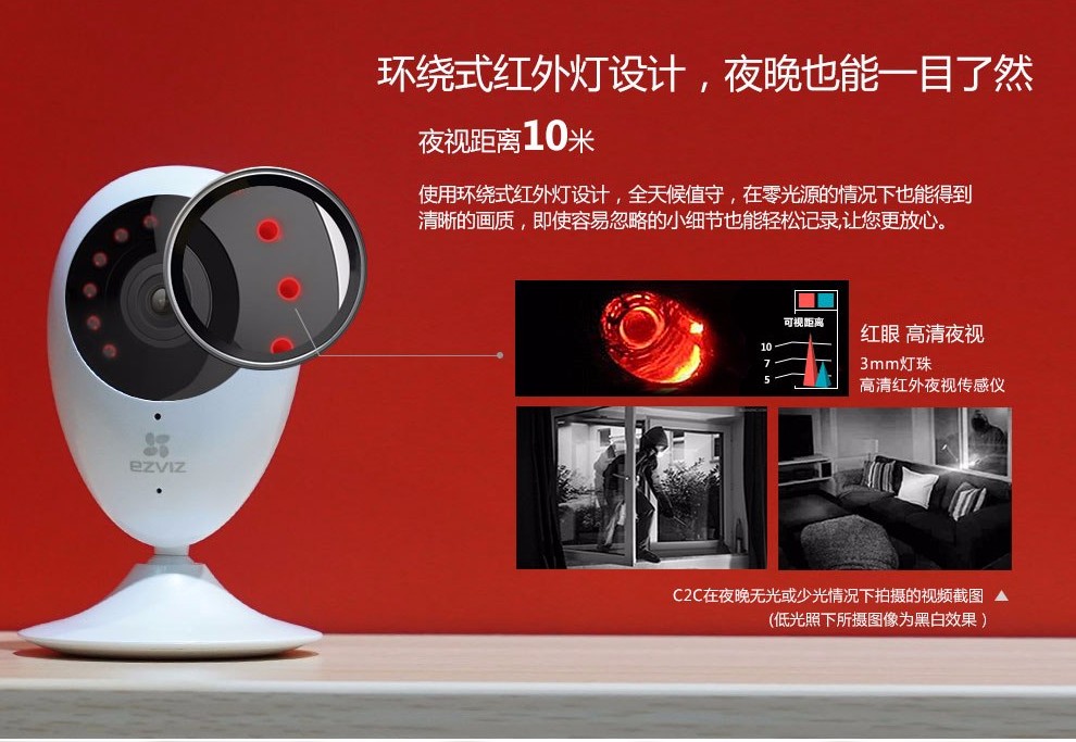 海康-螢石高清家用網絡攝像機,200萬像素,1080P高清分辨率,畫質清晰,成像效果一流;高清廣角視角,輕松覆蓋每個角落,;紅外高清夜視效果翻蓋范圍達10米,再也不用擔心夜晚看不清的尷尬。