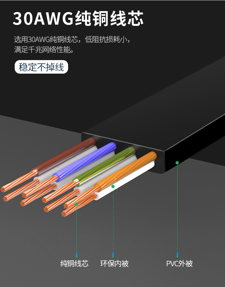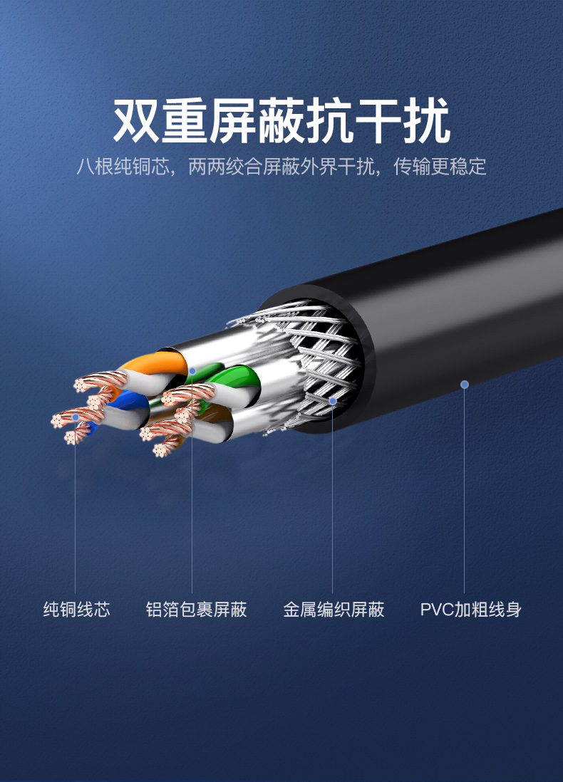 傳輸性能滿足并優(yōu)于六類標(biāo)準(zhǔn)。完全支持千兆以太網(wǎng)應(yīng)用,最高傳輸頻率350MHz,為未來應(yīng)用提供額外帶寬。中心為十字骨架隔離設(shè)計(jì),增強(qiáng)了帶寬和網(wǎng)絡(luò)性能。導(dǎo)體采用23AWG優(yōu)質(zhì)無氧銅線(99.99%);采用鋁箔總屏蔽結(jié)構(gòu),改善線纜外部串?dāng)_及衰減;線纜成軸包裝,保護(hù)結(jié)構(gòu)穩(wěn)定。